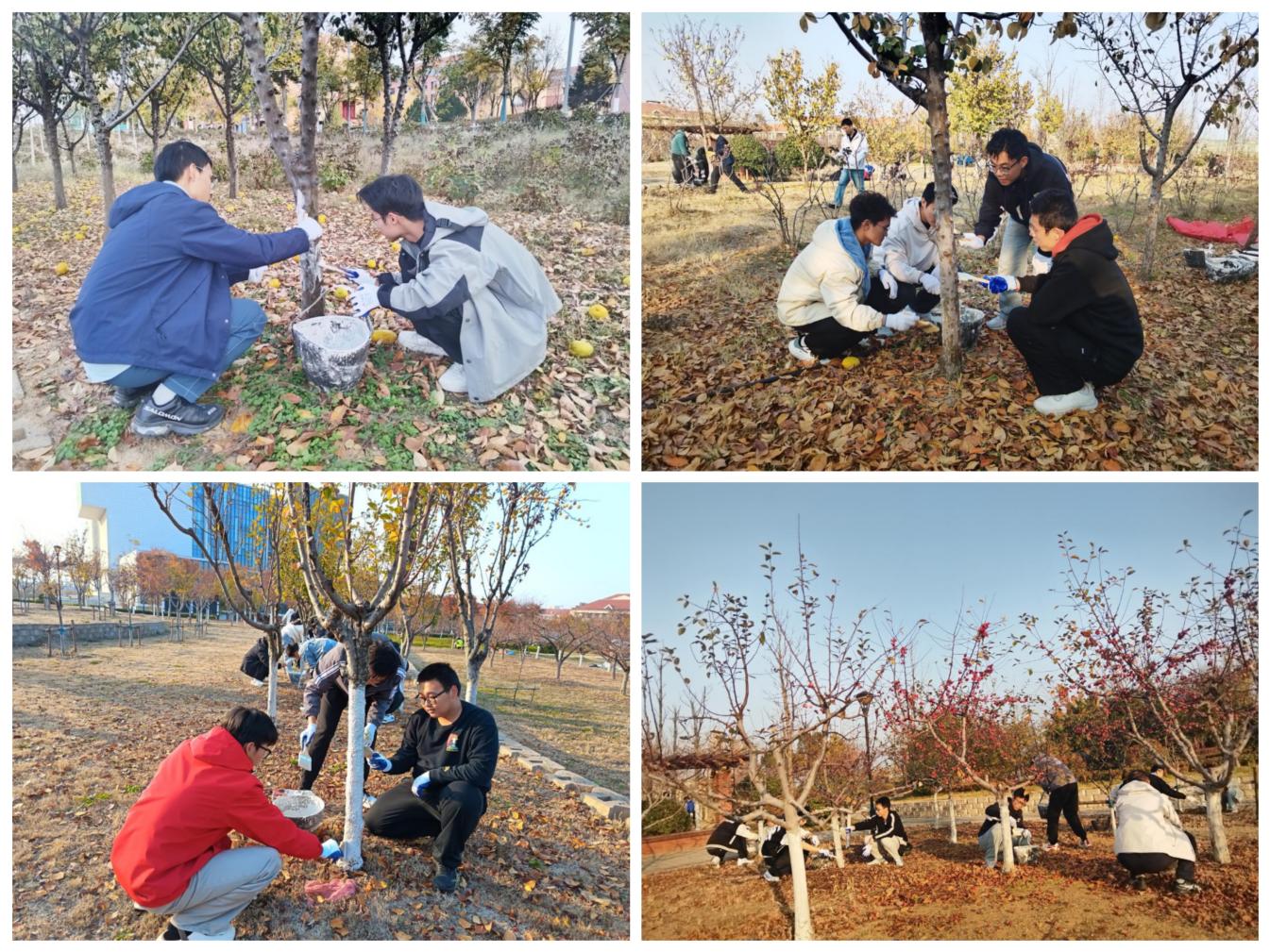 活动开始前,后勤绿化专业人员为同学们进行了现场培训,详细讲解了树木涂白的科学原理与规范操作。涂白剂不仅能反射阳光、降低树干昼夜温差,有效预防冻害和防治病虫害,为树木来年的健康生长提供重要保障。