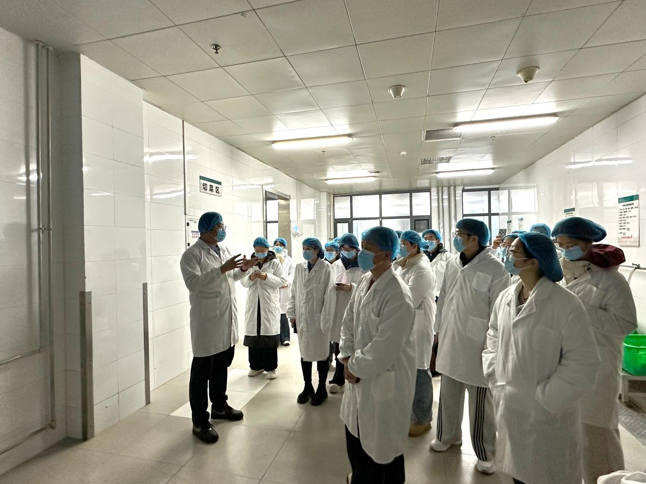 活动期间,饮食管理服务中心青岛分中心主任任文宁带领学生代表走进食堂后厨,依次参观了粗加工间、面食加工间、洗消间等多个功能区域,并实地了解了副食库及检验室的具体运作流程。通过现场观摩与详细讲解,同学们对食堂标准化的工作流程与严格的食品安全管控机制有了更为深入和直观地认知。